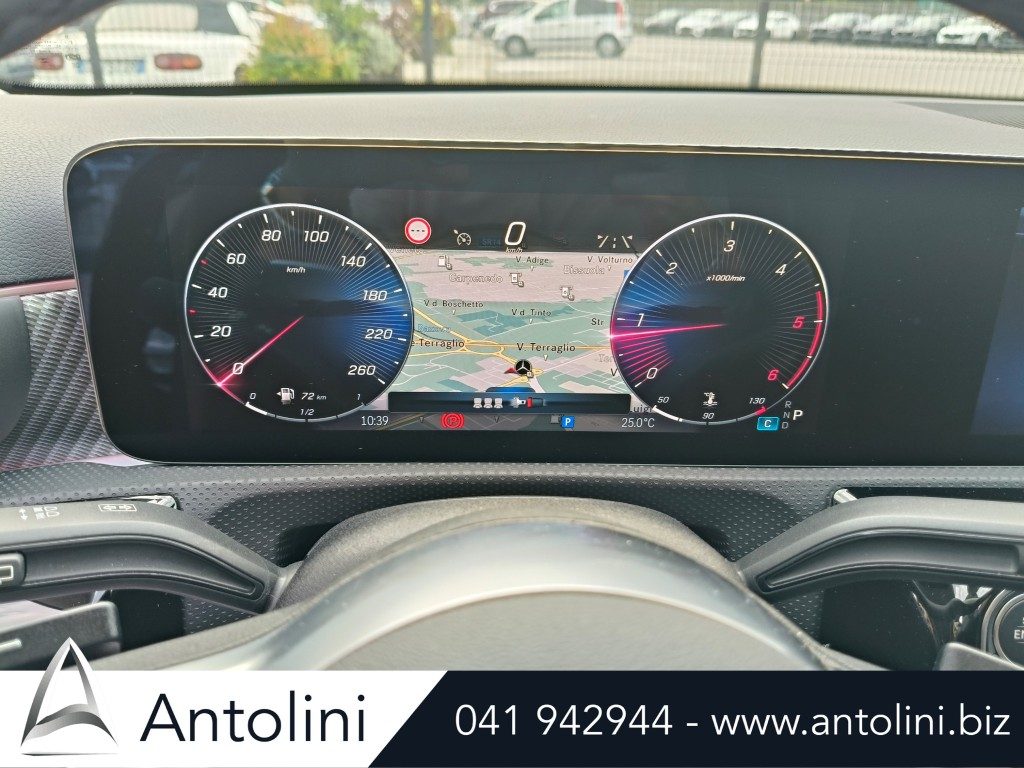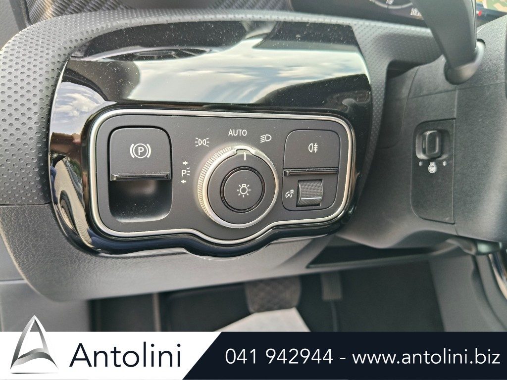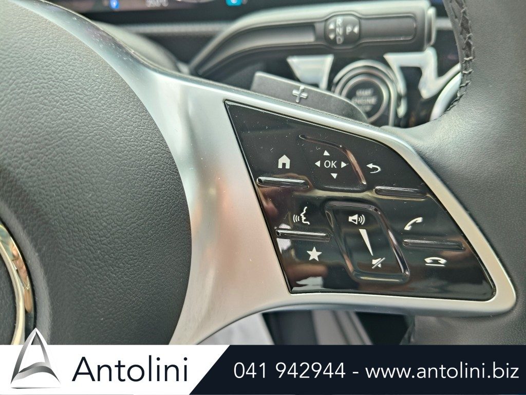 Cerchi da 18″ AMG, kit aereodinamico e sport pack AMG, dynamic select, inserti interni in carbon look, pacchetto comfort sedili, interni in pelle e microfibra, alette parasole illuminate, portabicchieri per passeggeri anteriori