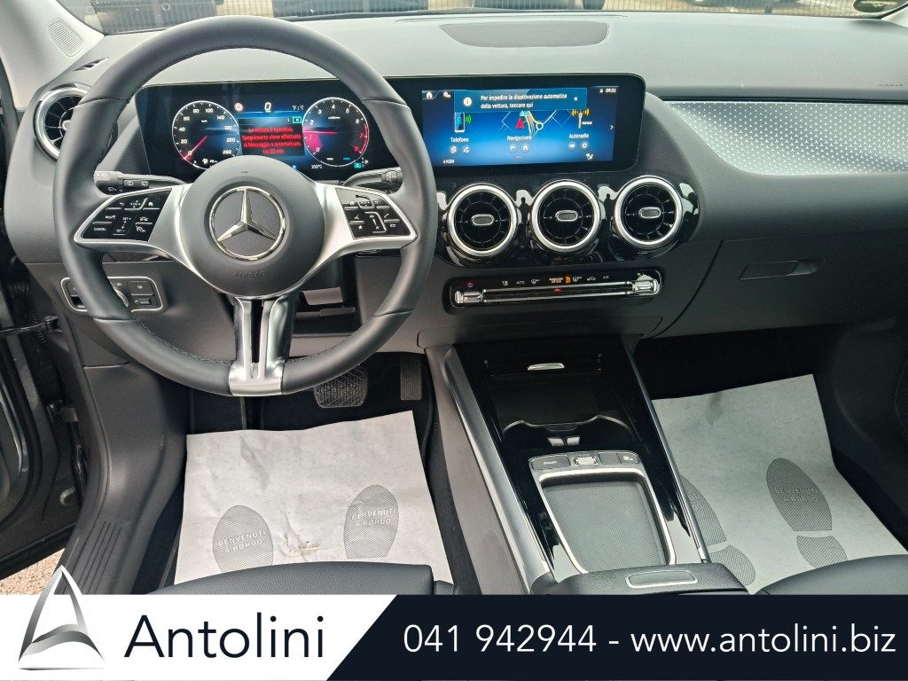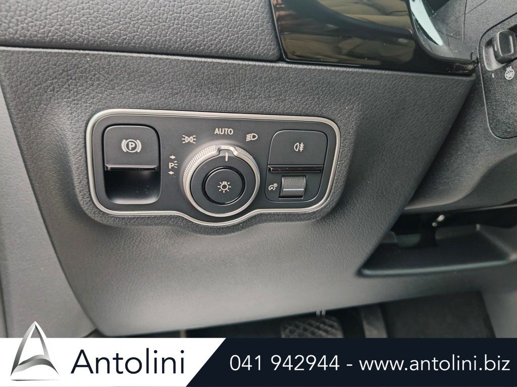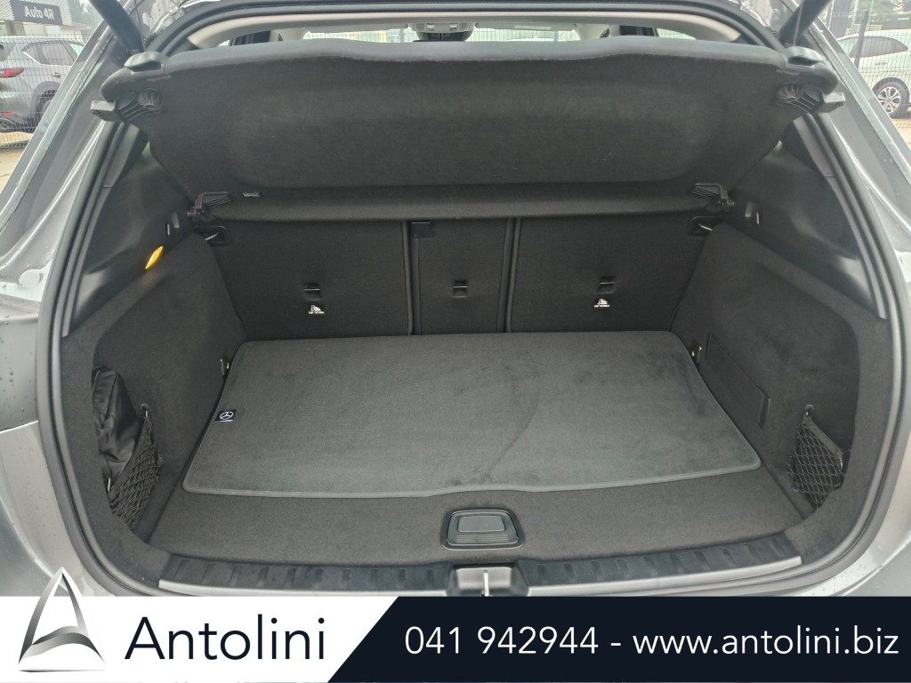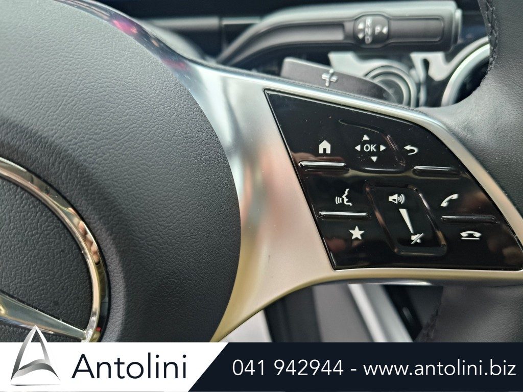 Cerchi da 18″ AMG, kit aereodinamico e sport pack AMG, dynamic select, inserti interni in carbon look, pacchetto comfort sedili, interni in pelle e microfibra, alette parasole illuminate, portabicchieri per passeggeri anteriori